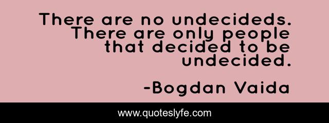 This page presents the quote "There are no undecideds. There are only people that decided to be undecided.". Author of this quote is Bogdan Vaida. This quote is about politics, decisions,.