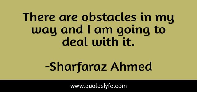 This page presents the quote "There are obstacles in my way and I am going to deal with it.". Author of this quote is Sharfaraz Ahmed. .