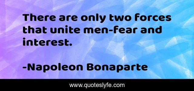 This page presents the quote "There are only two forces that unite men-fear and interest.". Author of this quote is Napoleon Bonaparte. .