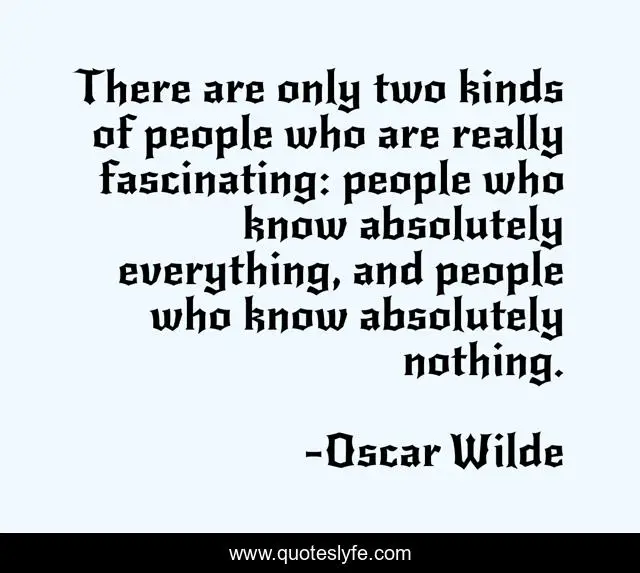 This page presents the quote "There are only two kinds of people who are really fascinating: people who know absolutely everything, and people who know absolutely nothing.". Author of this quote is Oscar Wilde. .