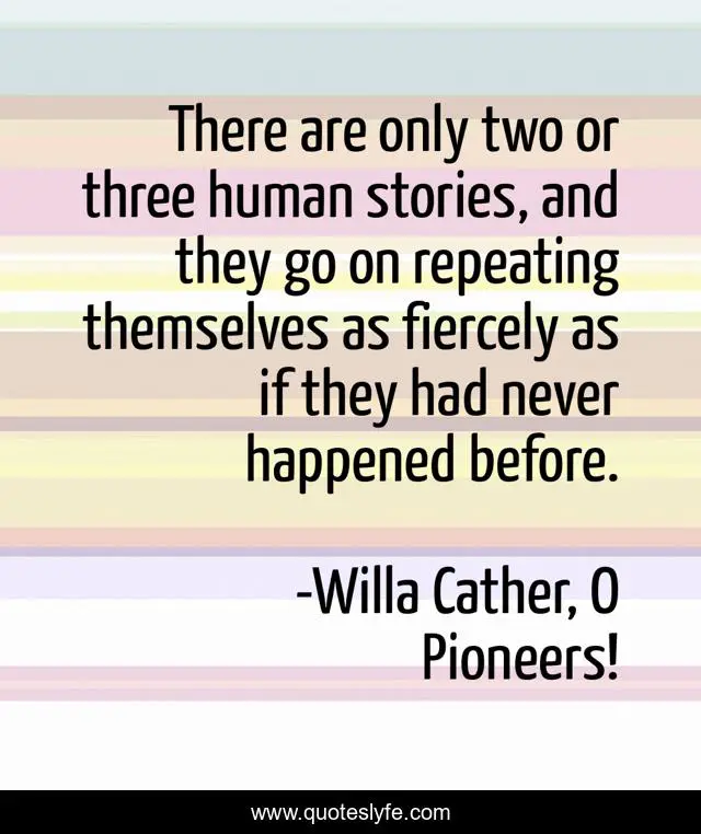 This page presents the quote "There are only two or three human stories, and they go on repeating themselves as fiercely as if they had never happened before.". Author of this quote is Willa Cather, O Pioneers!. This quote is about life, history,.