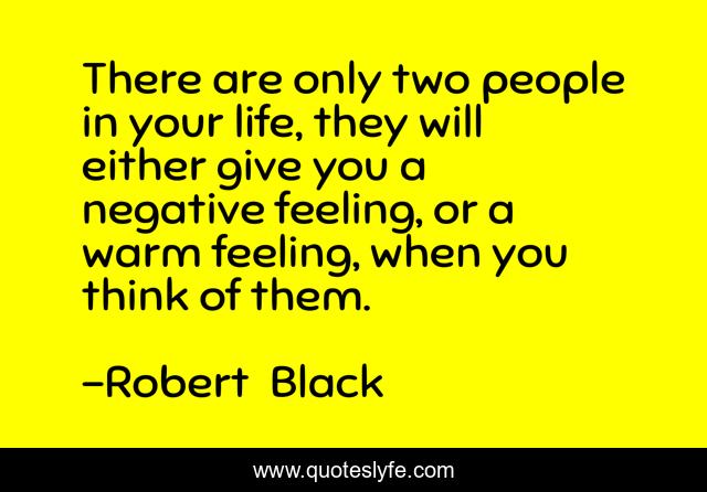 This page presents the quote "There are only two people in your life, they will either give you a negative feeling, or a warm feeling, when you think of them.". Author of this quote is Robert Black. This quote is about friends, warm, true-friends,.