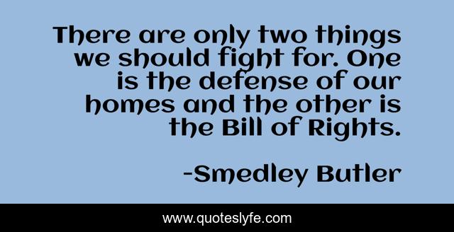This page presents the quote "There are only two things we should fight for. One is the defense of our homes and the other is the Bill of Rights.". Author of this quote is Smedley Butler. This quote is about fight, rights,.