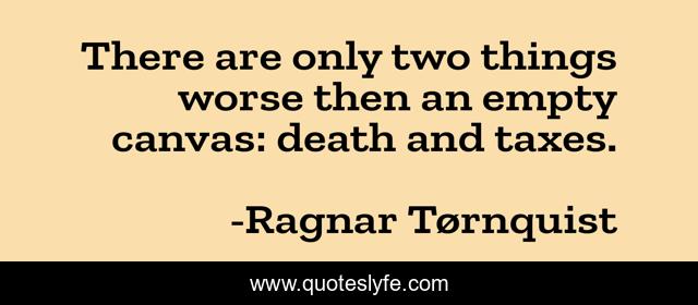 This page presents the quote "There are only two things worse then an empty canvas: death and taxes.". Author of this quote is Ragnar Tørnquist. This quote is about art, death, tax, taxes,.