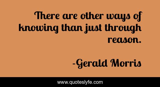 This page presents the quote "There are other ways of knowing than just through reason.". Author of this quote is Gerald Morris. This quote is about intuition, reason,.