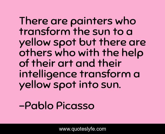 This page presents the quote "There are painters who transform the sun to a yellow spot but there are others who with the help of their art and their intelligence transform a yellow spot into sun.". Author of this quote is Pablo Picasso. .