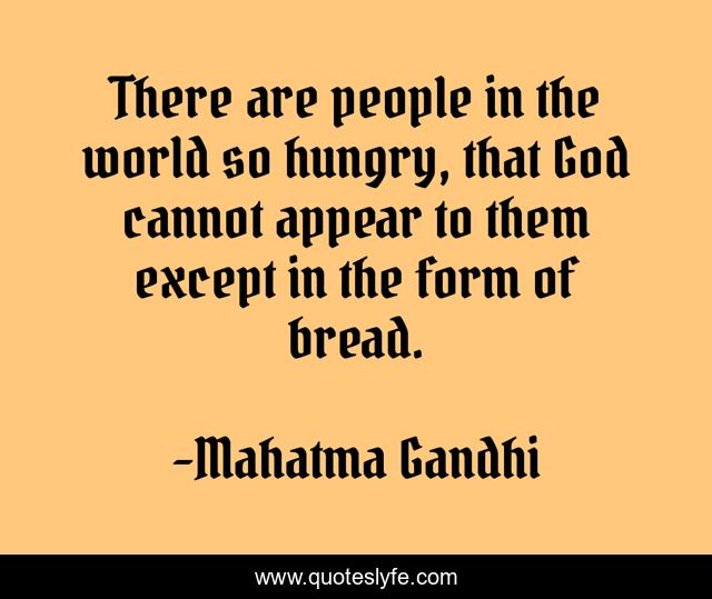 This page presents the quote "There are people in the world so hungry, that God cannot appear to them except in the form of bread.". Author of this quote is Mahatma Gandhi. This quote is about hunger, food, god, religion, poverty, humanity, bread,.