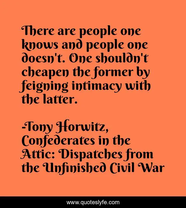 "Tony Horwitz, Confederates in the Attic: Dispatches from the Unfinished Civil War Quotes." Quoteslyfe.com, 2025. Mon. 08 Dec. 2025. <https://www.quoteslyfe.com/quote/There-are-people-one-knows-and-people-50492>.
