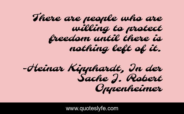 This page presents the quote "There are people who are willing to protect freedom until there is nothing left of it.". Author of this quote is Heinar Kipphardt, In der Sache J. Robert Oppenheimer. .