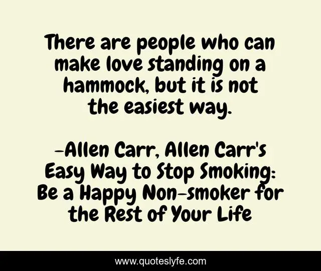 This page presents the quote "There are people who can make love standing on a hammock, but it is not the easiest way.". Author of this quote is Allen Carr, Allen Carr's Easy Way to Stop Smoking: Be a Happy Non-smoker for the Rest of Your Life. .