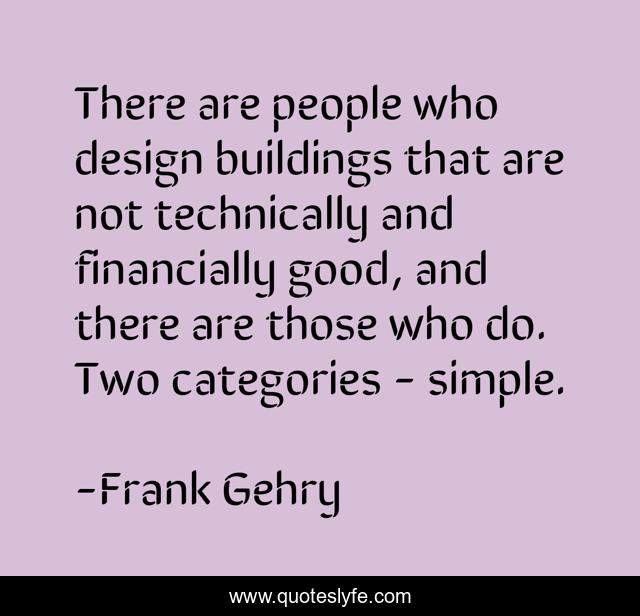This page presents the quote "There are people who design buildings that are not technically and financially good, and there are those who do. Two categories - simple.". Author of this quote is Frank Gehry. This quote is about simple, good, people,.