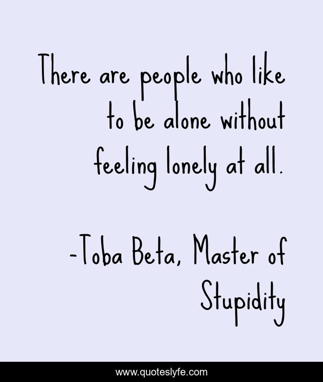 This page presents the quote "There are people who like to be alone without feeling lonely at all.". Author of this quote is Toba Beta, Master of Stupidity. This quote is about alone, lonely,.