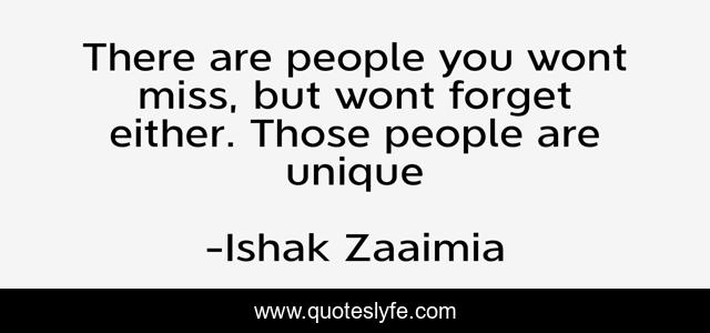 This page presents the quote "There are people you wont miss, but wont forget either. Those people are unique". Author of this quote is Ishak Zaaimia. This quote is about friends, uniqueness, friendship, people,.