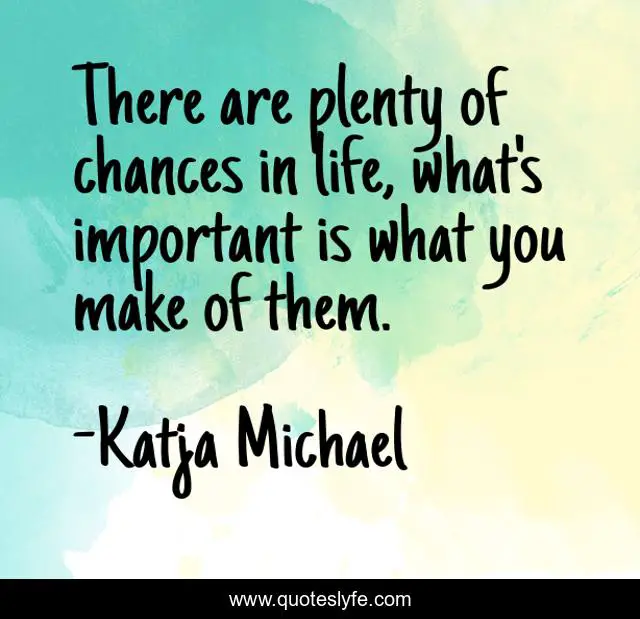 "Katja Michael Quotes." Quoteslyfe.com, 2025. Mon. 08 Dec. 2025. <https://www.quoteslyfe.com/quote/There-are-plenty-of-chances-in-life-110303>.