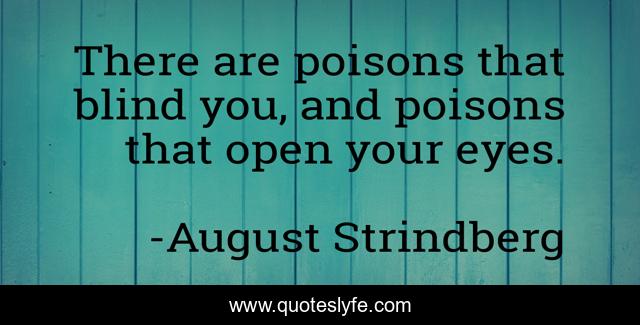 This page presents the quote "There are poisons that blind you, and poisons that open your eyes.". Author of this quote is August Strindberg. This quote is about blindness, sight, vision, poison,.