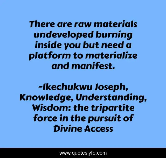 "Ikechukwu Joseph, Knowledge, Understanding, Wisdom: the tripartite force in the pursuit of Divine Access Quotes." Quoteslyfe.com, 2025. Fri. 05 Dec. 2025. <https://www.quoteslyfe.com/quote/There-are-raw-materials-undeveloped-burning-inside-169050>.
