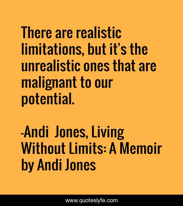 "Andi Jones, Living Without Limits: A Memoir by Andi Jones Quotes." Quoteslyfe.com, 2025. Sat. 06 Dec. 2025. <https://www.quoteslyfe.com/quote/There-are-realistic-limitations-but-it-s-194119>.