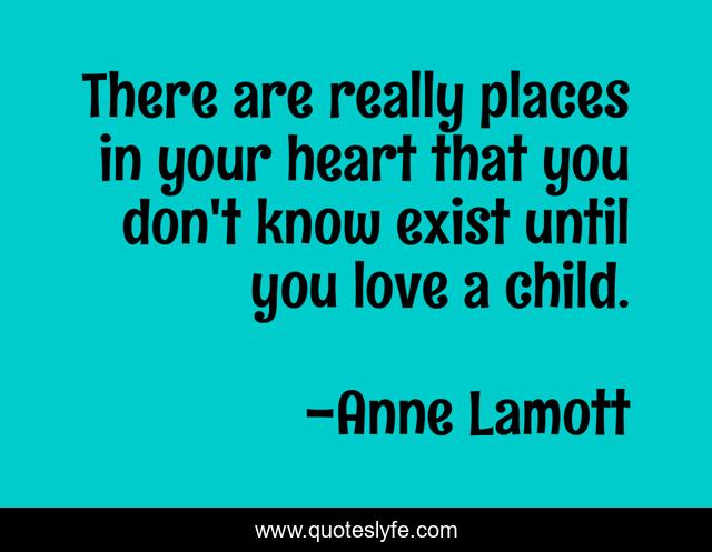 This page presents the quote "There are really places in your heart that you don't know exist until you love a child.". Author of this quote is Anne Lamott. This quote is about parenting, love, children, affection,.
