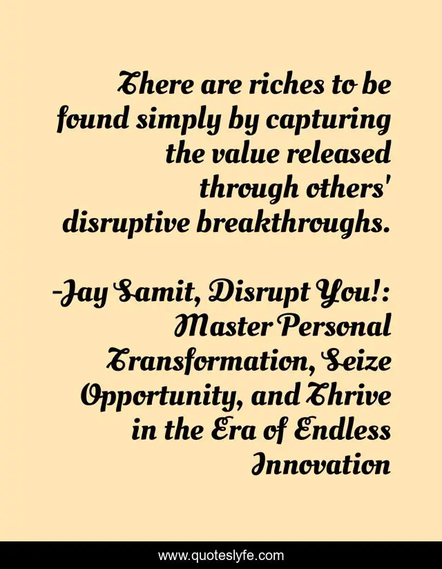 "Jay Samit, Disrupt You!: Master Personal Transformation, Seize Opportunity, and Thrive in the Era of Endless Innovation Quotes." Quoteslyfe.com, 2025. Fri. 05 Dec. 2025. <https://www.quoteslyfe.com/quote/There-are-riches-to-be-found-simply-106528>.
