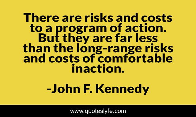 This page presents the quote "There are risks and costs to a program of action. But they are far less than the long-range risks and costs of comfortable inaction.". Author of this quote is John F. Kennedy. .