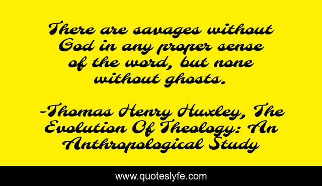 This page presents the quote "There are savages without God in any proper sense of the word, but none without ghosts.". Author of this quote is Thomas Henry Huxley, The Evolution Of Theology: An Anthropological Study. This quote is about savages, science, superstition, anthropology, theism, gods, ghosts, theology, beliefs,.