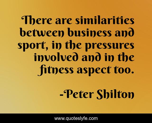 This page presents the quote "There are similarities between business and sport, in the pressures involved and in the fitness aspect too.". Author of this quote is Peter Shilton. This quote is about similarities, business,.