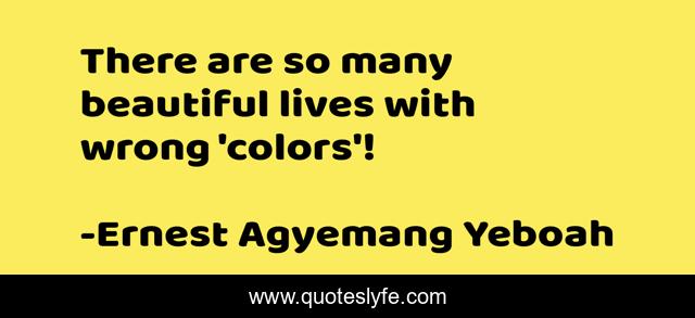 This page presents the quote "There are so many beautiful lives with wrong 'colors'!". Author of this quote is Ernest Agyemang Yeboah. This quote is about realities-of-life, sorrow, paradox, behind-the-scenes, you-may-never-know,.