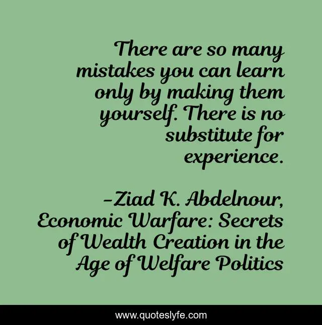 This page presents the quote "There are so many mistakes you can learn only by making them yourself. There is no substitute for experience.". Author of this quote is Ziad K. Abdelnour, Economic Warfare: Secrets of Wealth Creation in the Age of Welfare Politics. This quote is about mistakes, experience,.