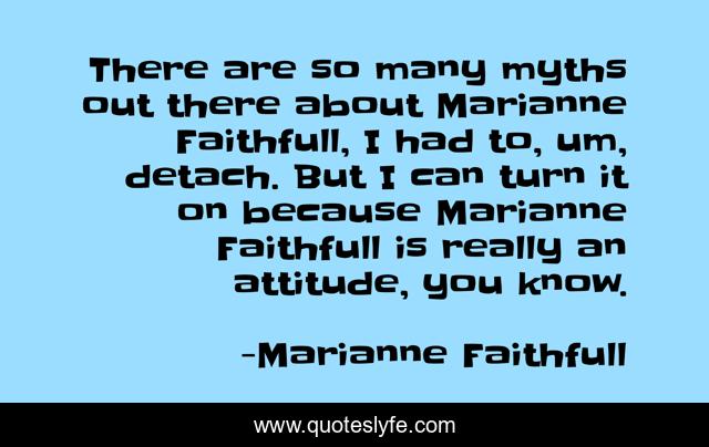 This page presents the quote "There are so many myths out there about Marianne Faithfull, I had to, um, detach. But I can turn it on because Marianne Faithfull is really an attitude, you know.". Author of this quote is Marianne Faithfull. .