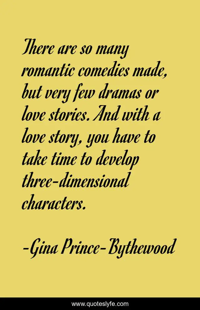 This page presents the quote "There are so many romantic comedies made, but very few dramas or love stories. And with a love story, you have to take time to develop three-dimensional characters.". Author of this quote is Gina Prince-Bythewood. This quote is about story, love, affection, time,.