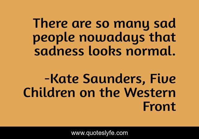 This page presents the quote "There are so many sad people nowadays that sadness looks normal.". Author of this quote is Kate Saunders, Five Children on the Western Front. This quote is about sadness, world-war-1,.