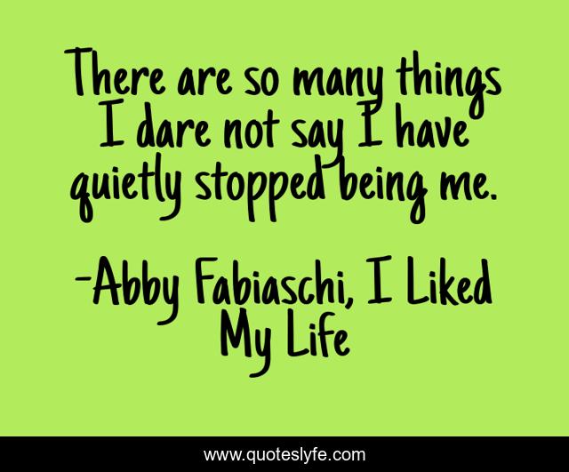 This page presents the quote "There are so many things I dare not say I have quietly stopped being me.". Author of this quote is Abby Fabiaschi, I Liked My Life. This quote is about motherhood, depression, bookclub,.