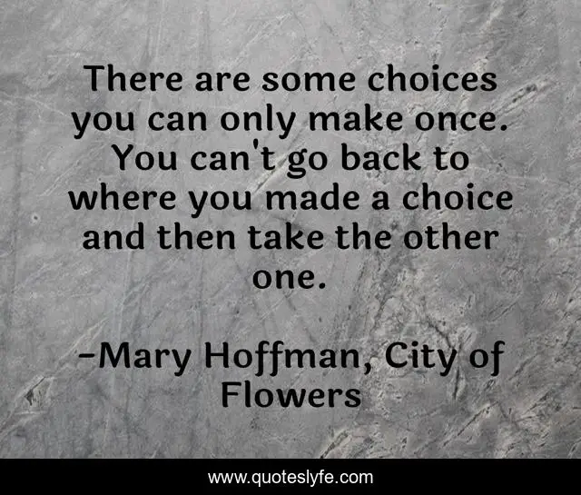 "Mary Hoffman, City of Flowers Quotes." Quoteslyfe.com, 2025. Fri. 05 Dec. 2025. <https://www.quoteslyfe.com/quote/There-are-some-choices-you-can-only-3257>.