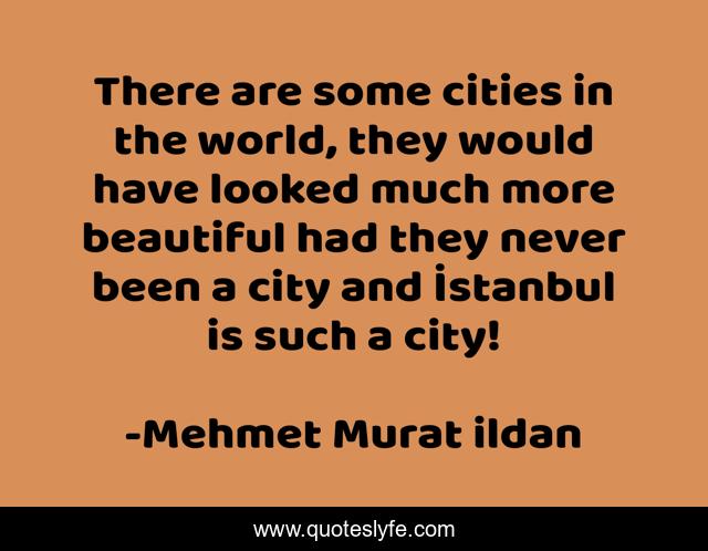 This page presents the quote "There are some cities in the world, they would have looked much more beautiful had they never been a city and İstanbul is such a city!". Author of this quote is Mehmet Murat ildan. This quote is about turkish-aphorisms, city, ildan-words, ildan-wise-sayings, istanbul, turkish, ildan-wisdom, turkish-sayings, turkish-playwrights,.