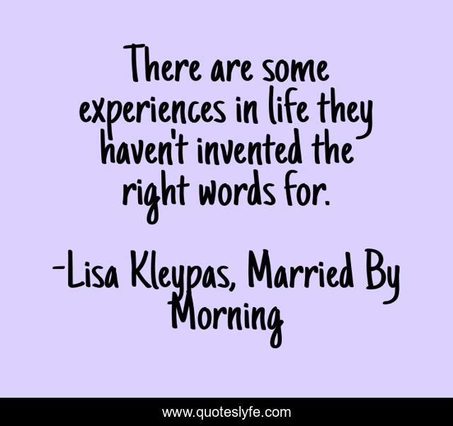 This page presents the quote "There are some experiences in life they haven't invented the right words for.". Author of this quote is Lisa Kleypas, Married By Morning. This quote is about romance, sorry, love, affection, wisdom,.