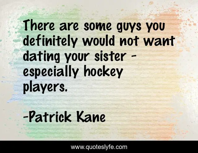 This page presents the quote "There are some guys you definitely would not want dating your sister - especially hockey players.". Author of this quote is Patrick Kane. This quote is about sister, hockey,.