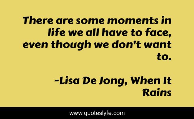 This page presents the quote "There are some moments in life we all have to face, even though we don't want to.". Author of this quote is Lisa De Jong, When It Rains. This quote is about life, death, pain, sadness,.