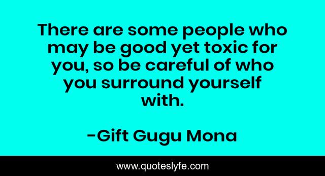 This page presents the quote "There are some people who may be good yet toxic for you, so be careful of who you surround yourself with.". Author of this quote is Gift Gugu Mona. This quote is about relationships, life-choices, good, sorround, toxic, careful, friendship,.