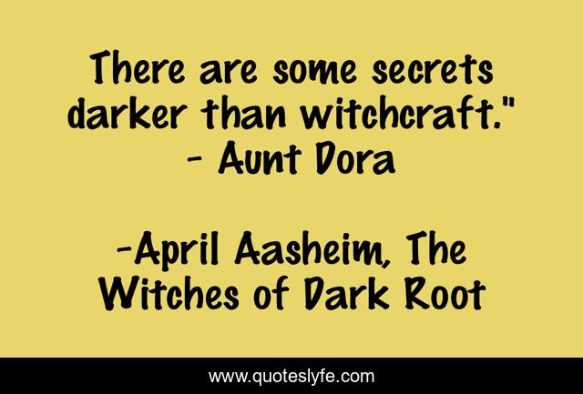 This page presents the quote "There are some secrets darker than witchcraft." - Aunt Dora". Author of this quote is April Aasheim, The Witches of Dark Root. This quote is about secrets, witches, witchcraft,.