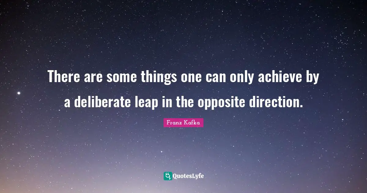 This page presents the quote "There are some things one can only achieve by a deliberate leap in the opposite direction.". Author of this quote is Franz Kafka. This quote is about inspiring, spring, new beginnings, achieve, deliberate, leap,.