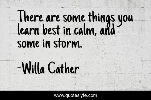 This page presents the quote "There are some things you learn best in calm, and some in storm.". Author of this quote is Willa Cather. This quote is about calm, storm,.