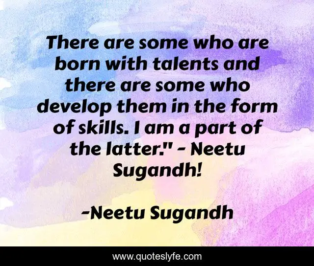 This page presents the quote "There are some who are born with talents and there are some who develop them in the form of skills. I am a part of the latter." - Neetu Sugandh!". Author of this quote is Neetu Sugandh. This quote is about confidence, english-language, learn-english, positive, motivational, optimistic,.