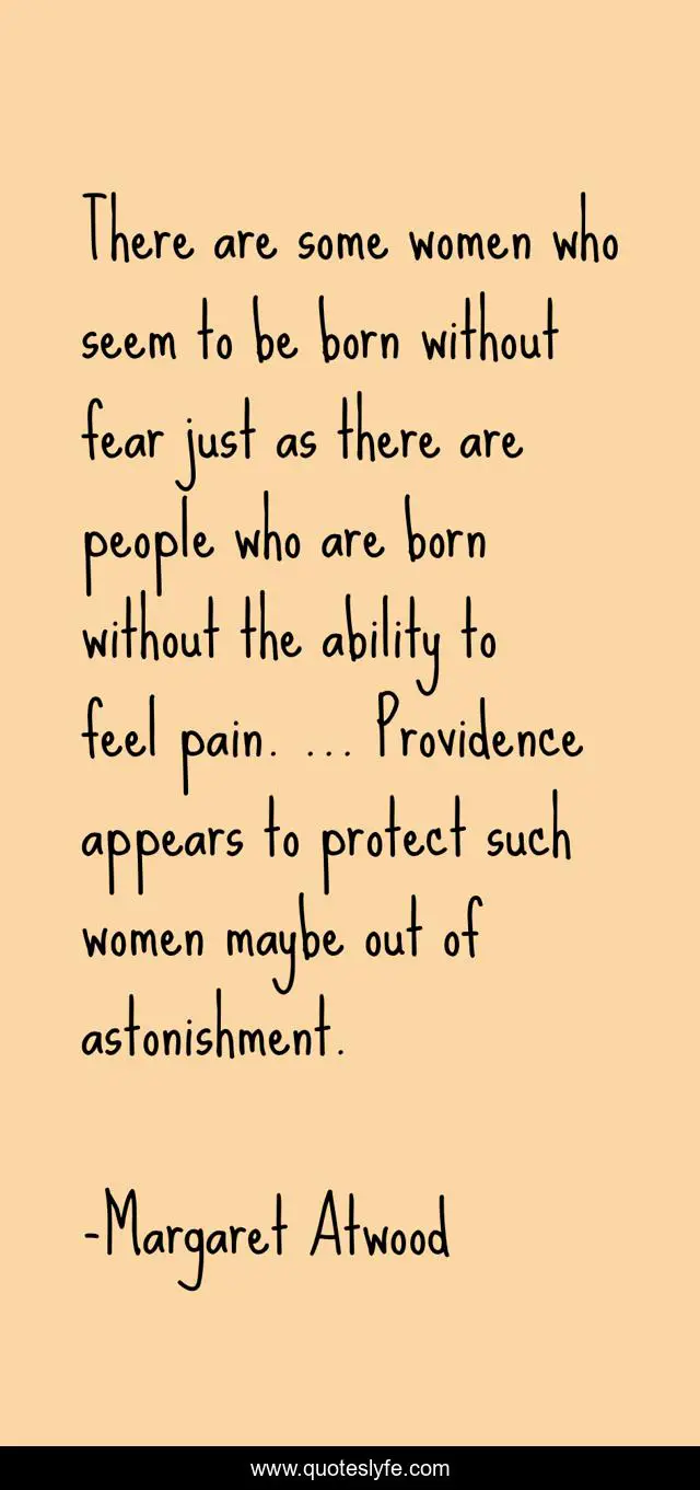 This page presents the quote "There are some women who seem to be born without fear just as there are people who are born without the ability to feel pain. ... Providence appears to protect such women maybe out of astonishment.". Author of this quote is Margaret Atwood. .