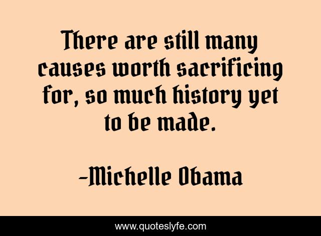 This page presents the quote "There are still many causes worth sacrificing for, so much history yet to be made.". Author of this quote is Michelle Obama. This quote is about still, worth, made,.
