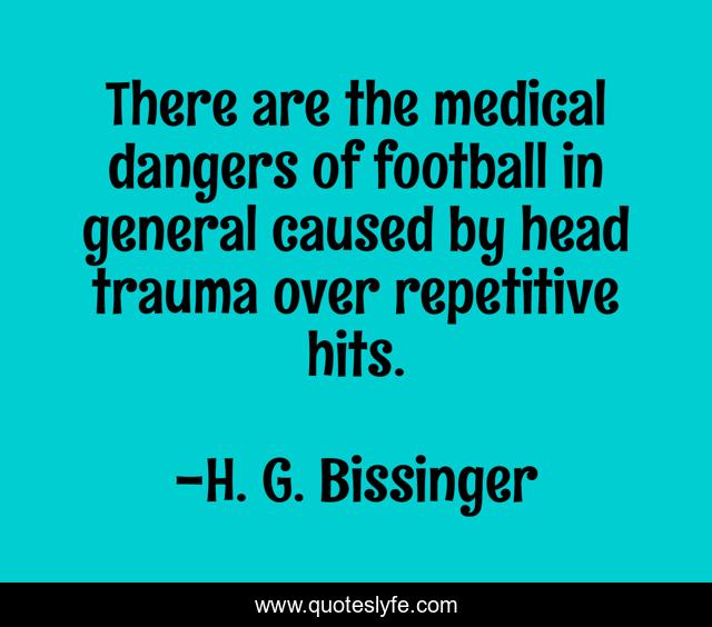 This page presents the quote "There are the medical dangers of football in general caused by head trauma over repetitive hits.". Author of this quote is H. G. Bissinger. This quote is about head, football, trauma,.