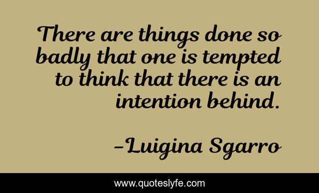 This page presents the quote "There are things done so badly that one is tempted to think that there is an intention behind.". Author of this quote is Luigina Sgarro. This quote is about mistakes, quality, misbehaving,.
