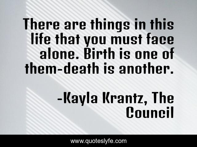 This page presents the quote "There are things in this life that you must face alone. Birth is one of them-death is another.". Author of this quote is Kayla Krantz, The Council. This quote is about death, birth,.
