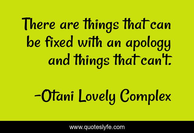 This page presents the quote "There are things that can be fixed with an apology and things that can't.". Author of this quote is Otani Lovely Complex. This quote is about apologizing, complex, forgiveness, lovely,.