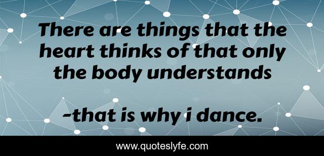 This page presents the quote "There are things that the heart thinks of that only the body understands". Author of this quote is that is why i dance.. .