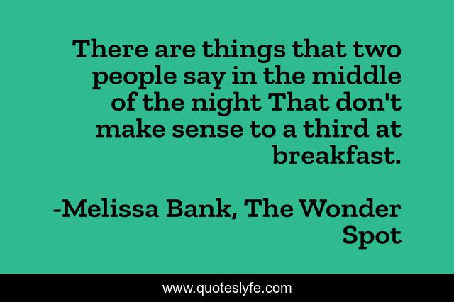 This page presents the quote "There are things that two people say in the middle of the night That don't make sense to a third at breakfast.". Author of this quote is Melissa Bank, The Wonder Spot. .